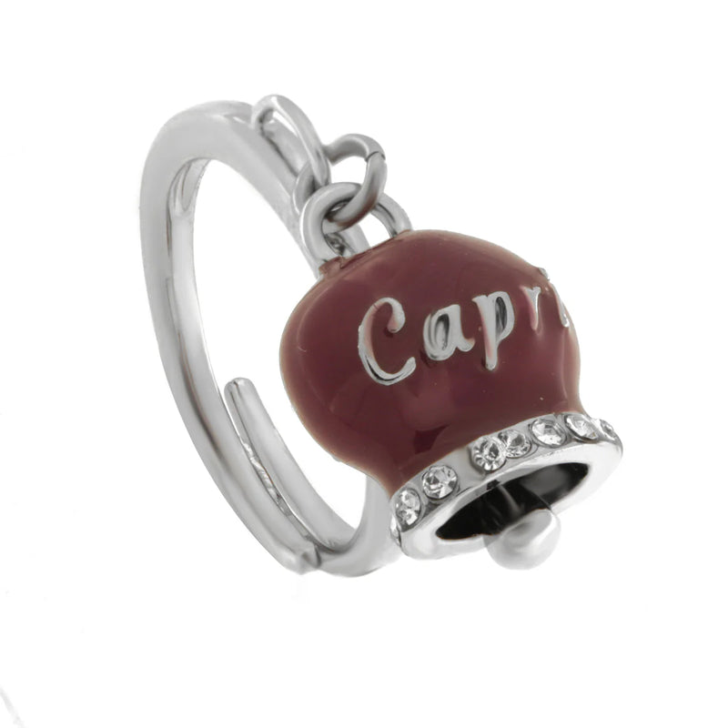 Anello in Acciaio con campanella borgogna con scritta Capri