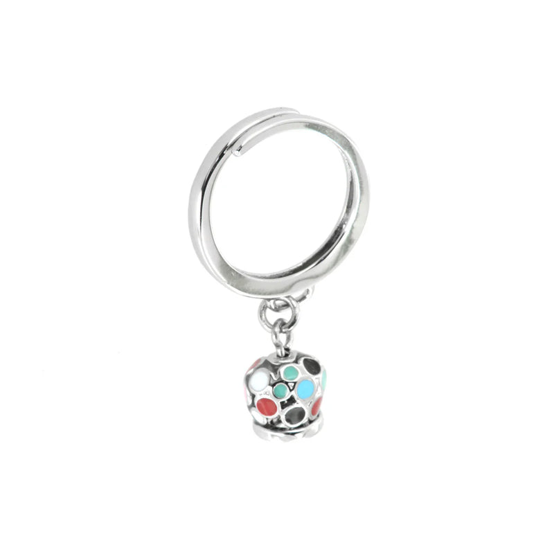 Anello in Metallo con campanella pendente impreziosita da smalti multicolore