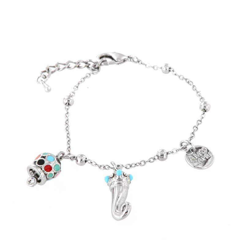 AMO CAPRI - Bracciale in Metallo campanella e corno pendenti impreziositi da smalti colorati