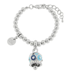 Bracciale in Metallo con campanella a pois blu e azzurro e zirconi