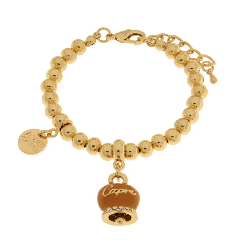 Amo Capri - Bracciale in Metallo con campanella arancio scritta capri