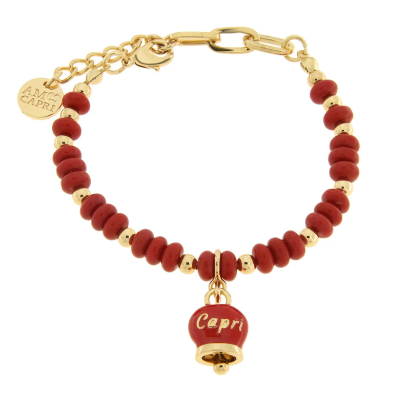 AMO CAPRI - Bracciale in Metallo con sfere e campanella Capri rossa