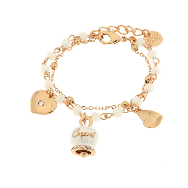 AMO CAPRI - Bracciale in Metallo multifilo con pietre bianche e campanella Capri bianca