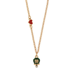 Collana in Metallo con cuore e campanella portafortuna verde con quadrifoglio