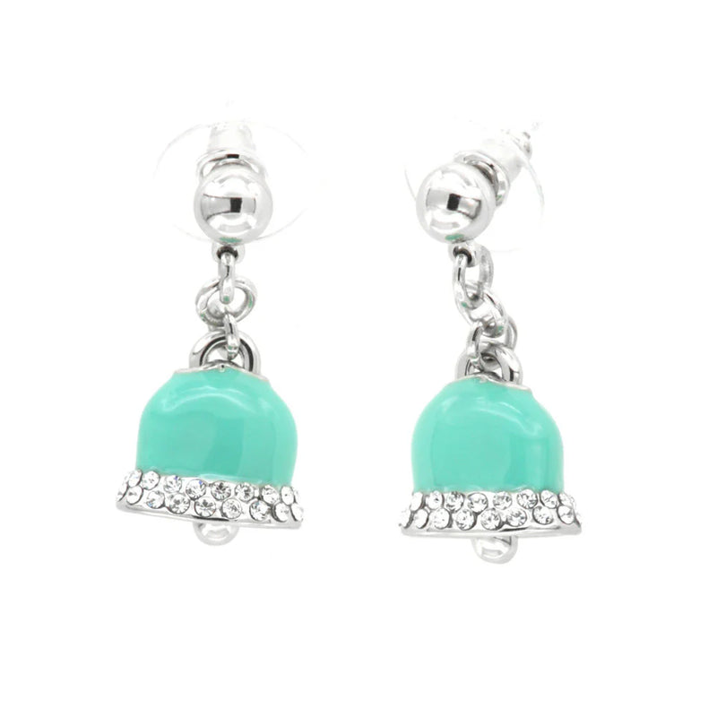 Orecchini in Metallo con campanelle portafortuna impreziosite da smalto verde e linee di cristalli bianchi