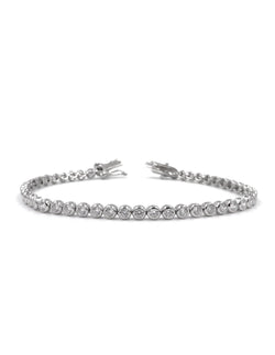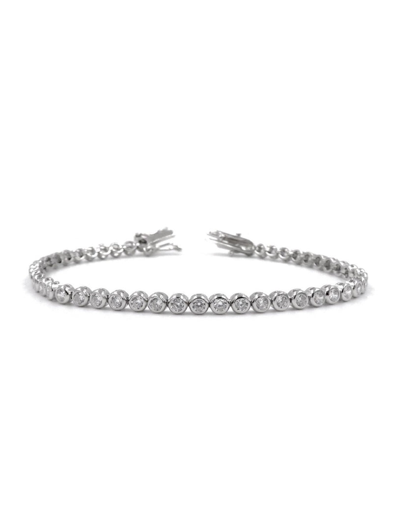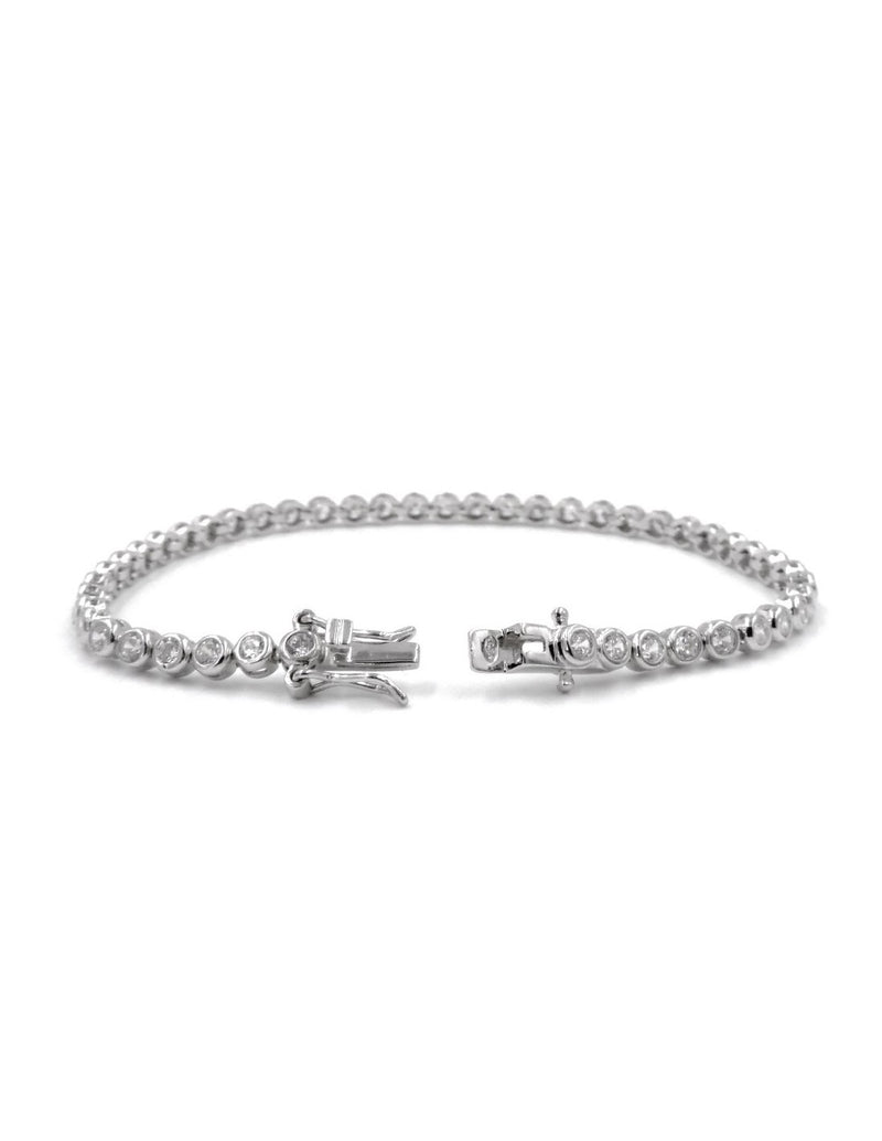 Un Bracciale nato per Stupire chi lo riceverà per la sua eleganza e semplicità. Il Tennis in Argento 925 Rodiato con Zirconi Bianchi Modello Cipollina è un gioiello completamente anallergico. La chiusura è a scatto con alette di sicurezza. Le pietre sono zirconi bianchi taglio brillante da 2,5 mm. La montatura è a cipollina.