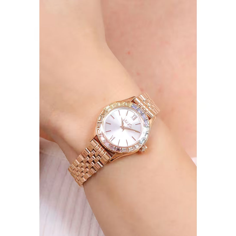 Orologio da donna di Liu Jo della collezione Casual Season. Orologio realizzato in acciaio di colore oro rosa. La cassa è in acciaio, di dimensione 30mm e il movimento è al quarzo. L'impermeabilità è di 3atm. La referenza è: TLJ2195